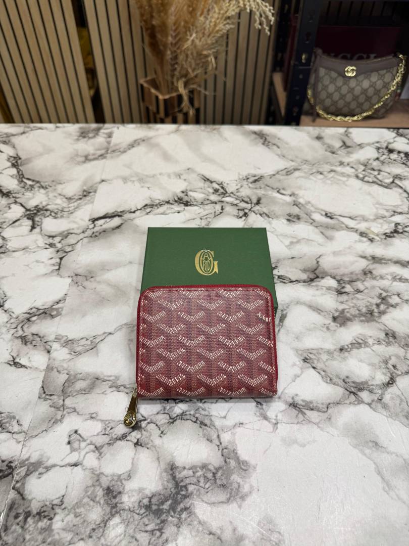 • Goyar_d Chevron Compact Zipper Wallet With Box (Red) (AAA60067)