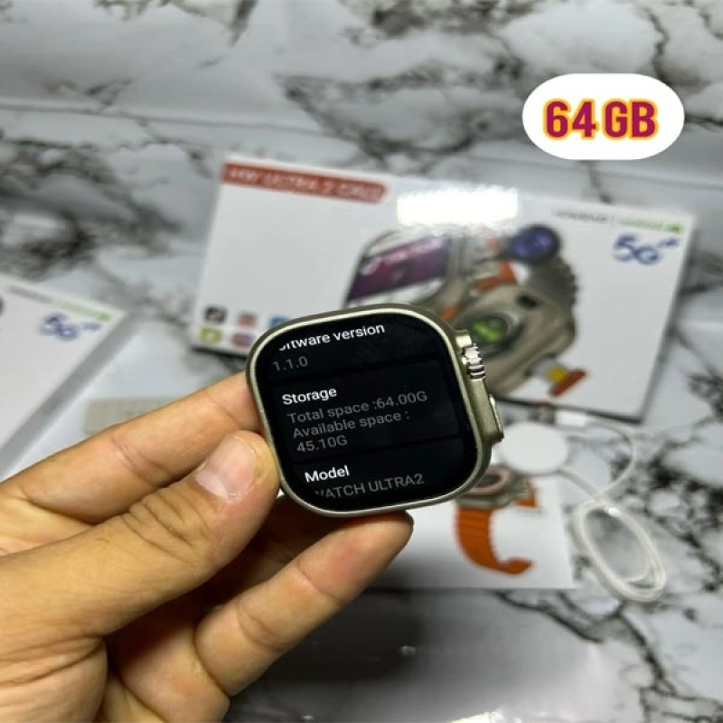 HW Ultra 2 Call Smartwatch 5G Android System Dual Camera Wifi GPS 4GB Ram + 64GB Storage Memory (Black)